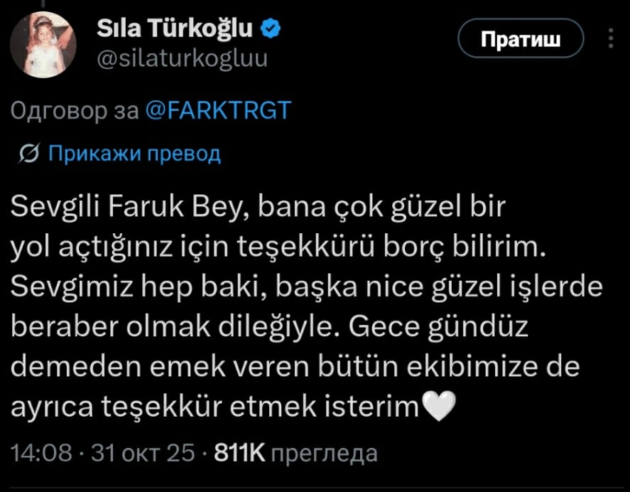 Naravno, Sıla Türkoğlu nije ostavila ovu objavu bez odgovora. I koliko god joj se možda nije dopalo ono što je scenaristički urađeno sa njenom Dogom, glumica se ipak zahvalila na iskustvu i ogromnoj popularnosti koju je stekla zahvaljujući projektu.